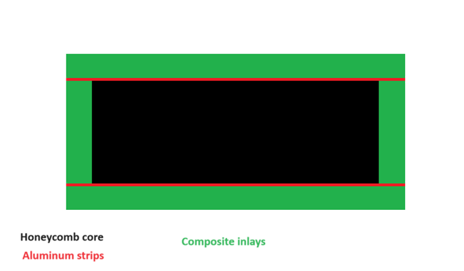 The aluminum strips bonded to the top and bottom of the open cells of the honeycomb core would have wings extending at a 45 degree angle from their corners. These wings would be exposed to absorb any direct blows to the edges of the shaft, thus protecting the composite material, which would be inlaid along the four sides of the stick's shaft.