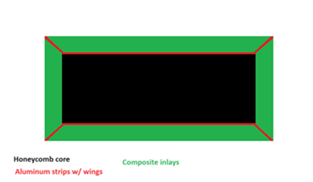 The aluminum strips bonded to the top and bottom of the open cells of the honeycomb core would have wings extending at a 45 degree angle from their corners. These wings would be exposed to absorb any direct blows to the edges of the shaft, thus protecting the composite material, which would be inlaid along the four sides of the stick's shaft.